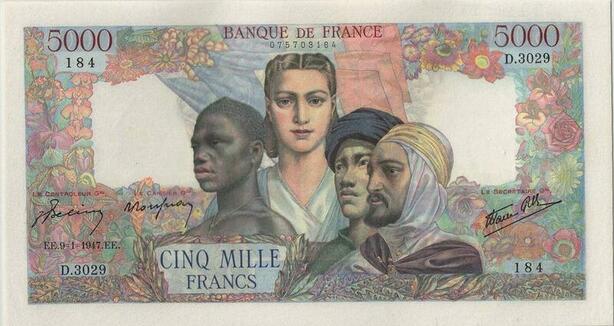 Q5181 Très Rare France 5000 Francs Empire Français 1947 PCGS AU55 -> Make offer