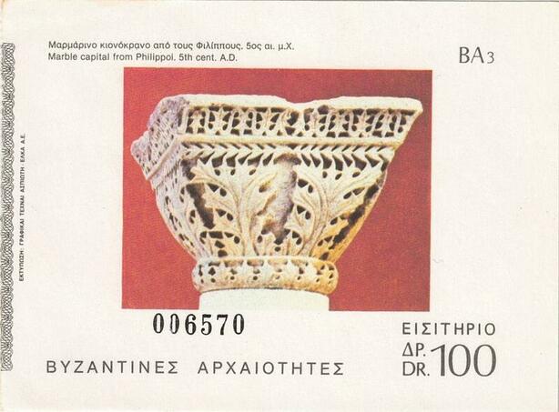 Q5188 Greece Museum Ticket Byzantine Antiquities 100 AU - Make Offer