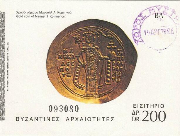 Q5192 Greece Museum Ticket Gold Coin of Manuel I Komnenos 200 - Make Offer