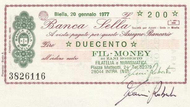 Q5195 Banknote Italy 200 Lire Banca Sella Biella 1977 - Make Offer