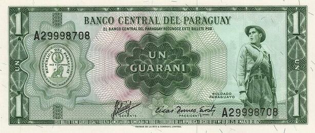 Q5202 Banknote Paraguay 1 Guarani Soldier Palacio Legislativo 1952 - Make Offer