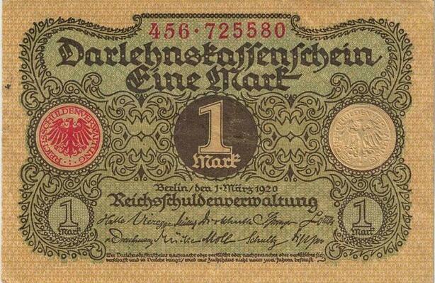 Q5208 Banknote Germany 1 Mark Darlehnskassenschein 1920 UNC - Make Offer