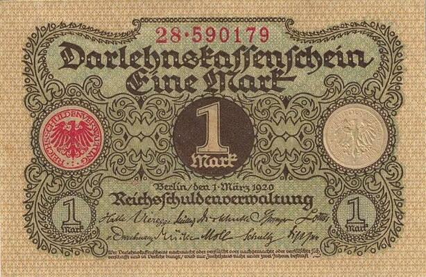 Q5210 Banknote Germany 1 Mark Darlehnskassenschein 1920 UNC - Make Offer