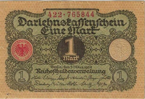 Q5211 Banknote Germany 1 Mark Darlehnskassenschein 1920 AU - Make Offer
