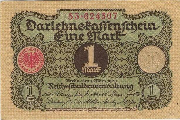 Q5212 Banknote Germany 1 Mark Darlehnskassenschein 1920 AU - Make Offer