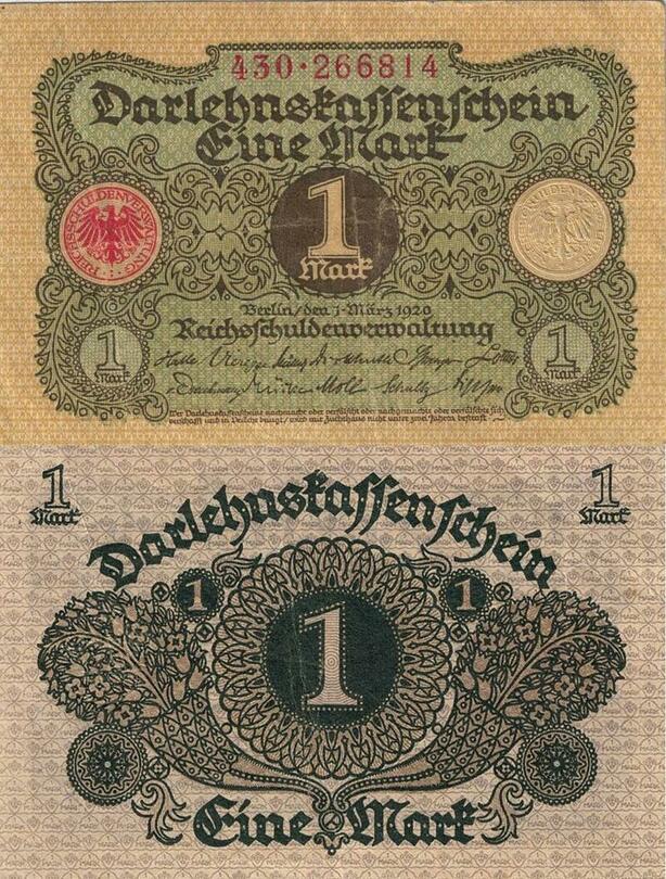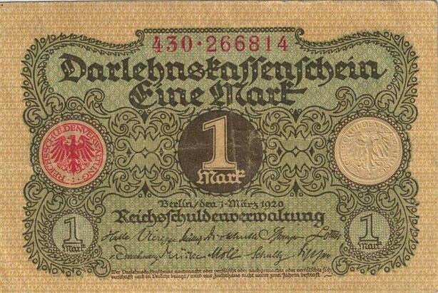 Q5214 Banknote Germany 1 Mark Darlehnskassenschein 1920 AU - Make Offer
