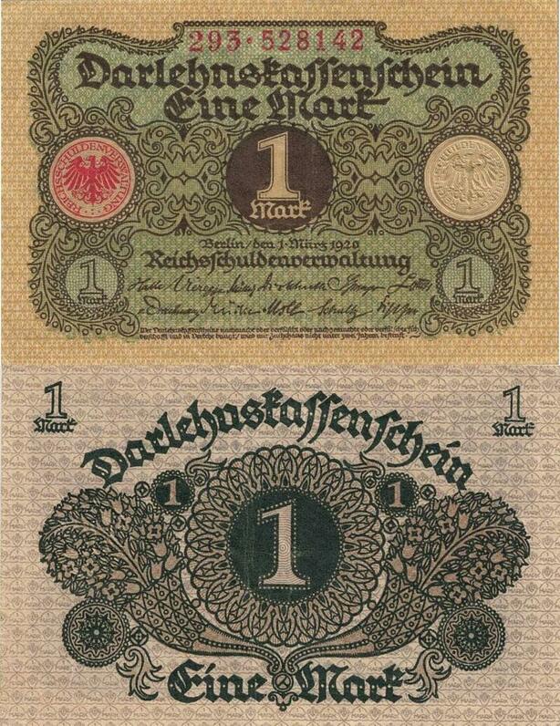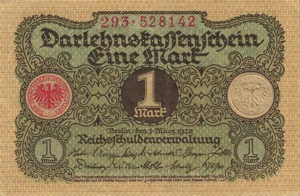 Q5215 Banknote Germany 1 Mark Darlehnskassenschein 1920 AU - Make Offer