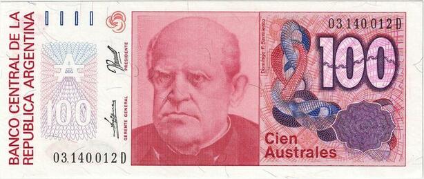 Q5216 Banknote Argentina 100 Australes Domingo Faustino Sarmiento 1985-1990