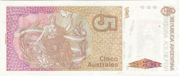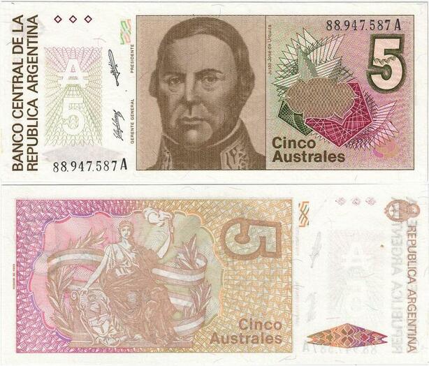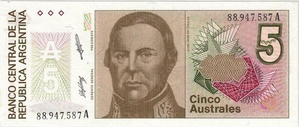 Q5217 Banknote Argentina 5 Australes Justo José de Urquiza Liberty 1986