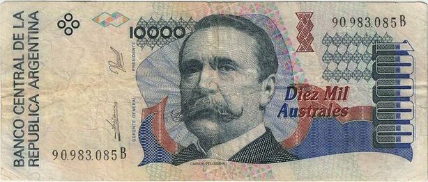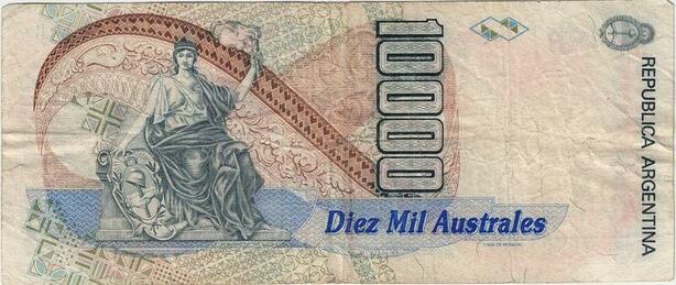 Q5222 Banknote Argentina 10000 Australes Carlos Pellegrini Liberty 1992