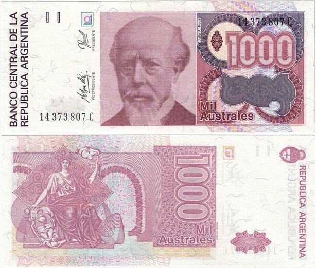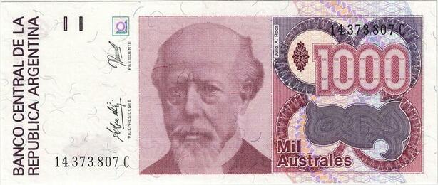 Q5223 Banknote Argentina 1000 Australes Julio A. Roca Liberty 1988-1990