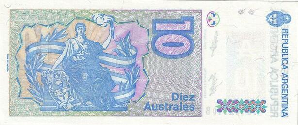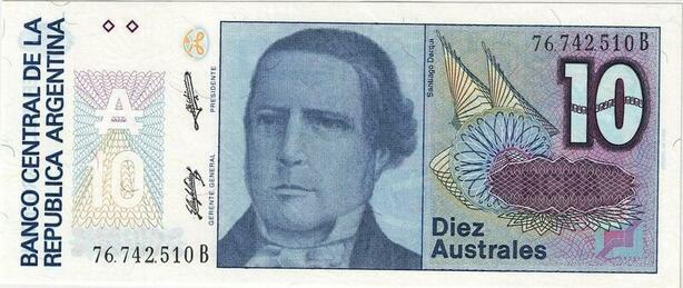 Q5227 Banknote Argentina 10 Australes Santiago Derqui Liberty 1985-1989