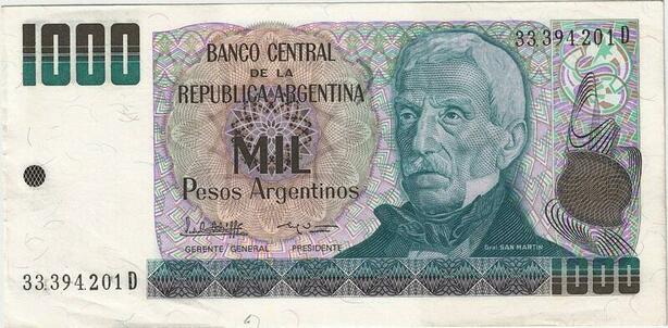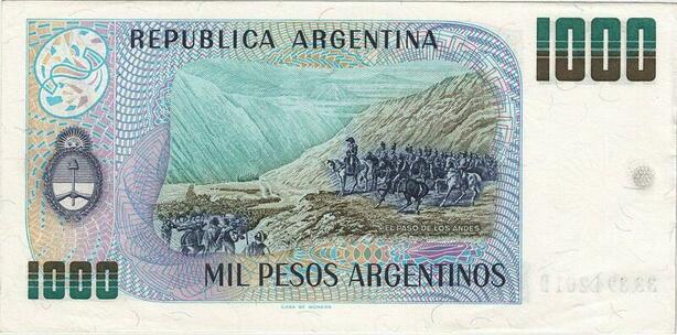 Q5232 Banknote Argentina 1000Pesos Jose De San Martin El Paso Andes 1983-85