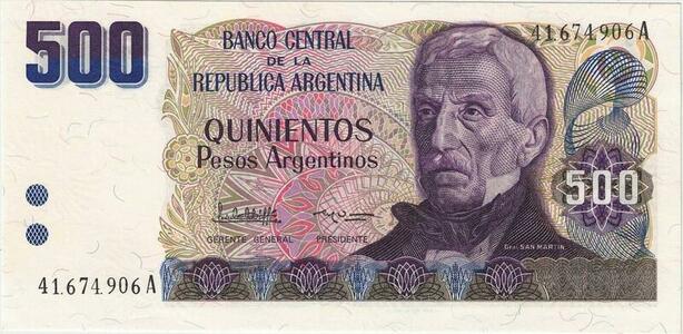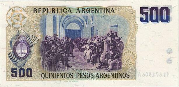 Q5233 Banknote Argentina 500 Pesos Jose De San Martin Cabildo abierto 1984