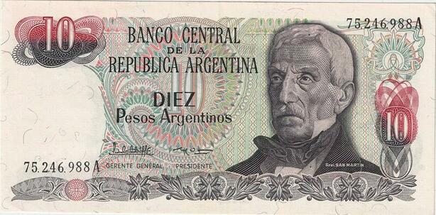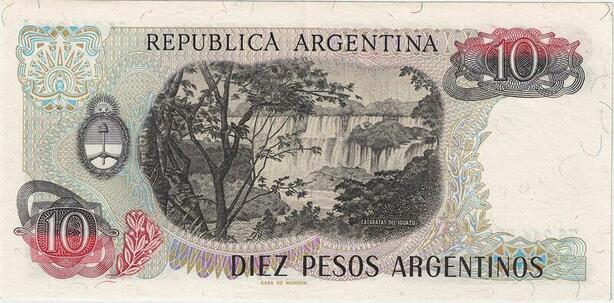 Q5235 Banknote Argentina 10 Pesos Jose De San Martin Igauzu Falls 1983-1984