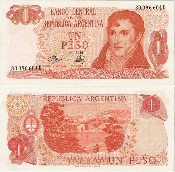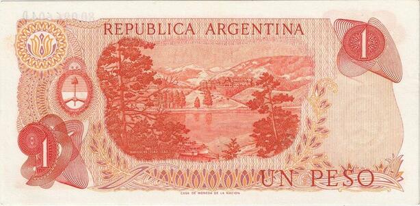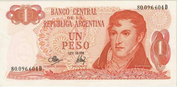 Q5242 Banknote Argentina 1 Pesos Manuel Belgrano Llao Llao Hotel 1983
