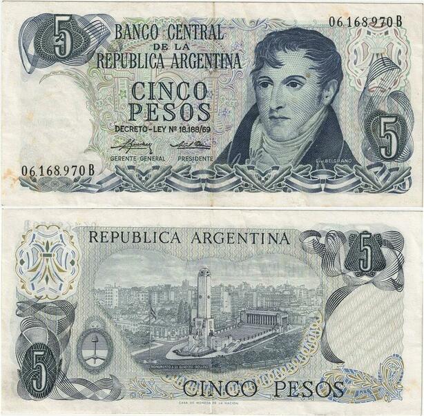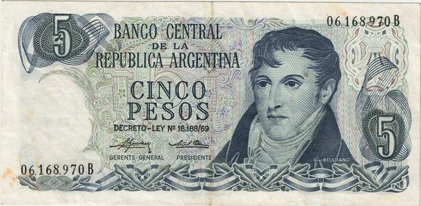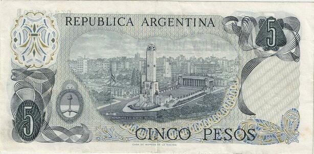 Q5244 Banknote Argentina 5 Pesos Manuel Belgrano Memorial 1974-1976 - Offer