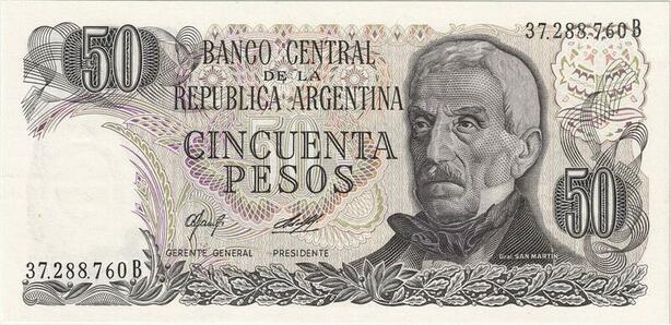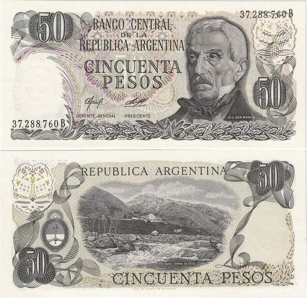 Q5245 Banknote Argentina 50 Pesos Jose De San Martin Termas Jujuy 1976-1978