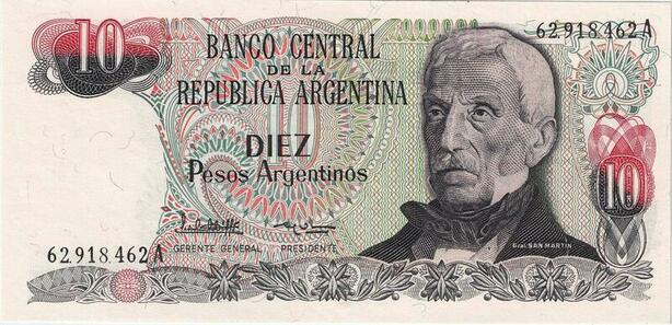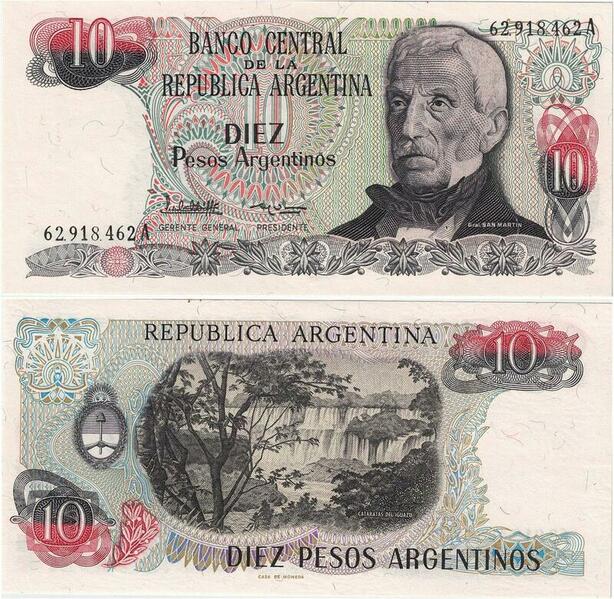 Q5246 Banknote Argentina 10 Pesos Jose De San Martin Igauzu Falls 1983-1984