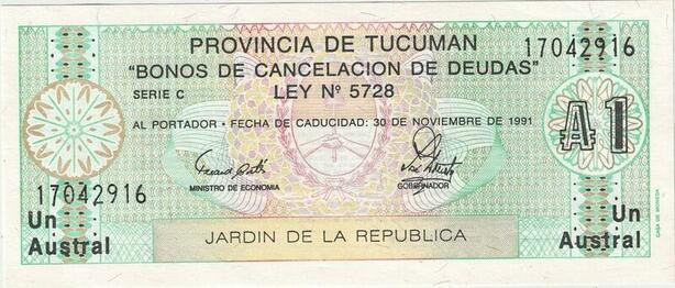 Q5251 Banknote Argentina 1 Austral Motifs Tucuman 1991 - Make Offer
