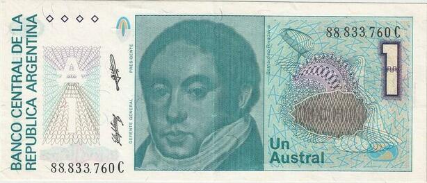 Q5256 Banknote Argentina 1 Austral Bernardino Rivadavia Liberty 1985-1991