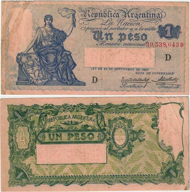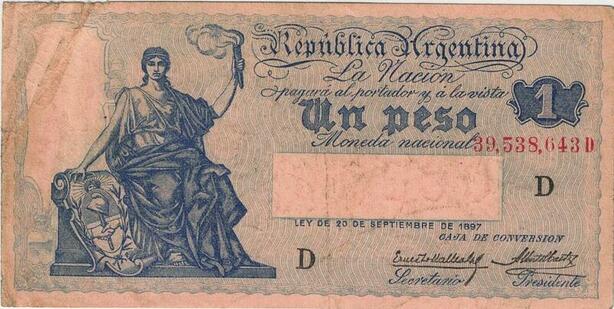 Q5265 Banknote Argentina 1 Peso Liberty with torch 1897 - Make Offer