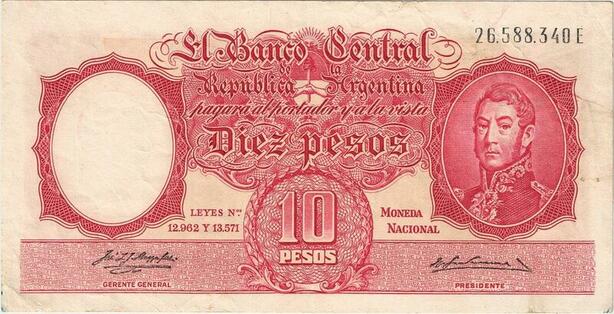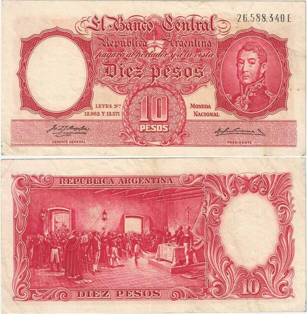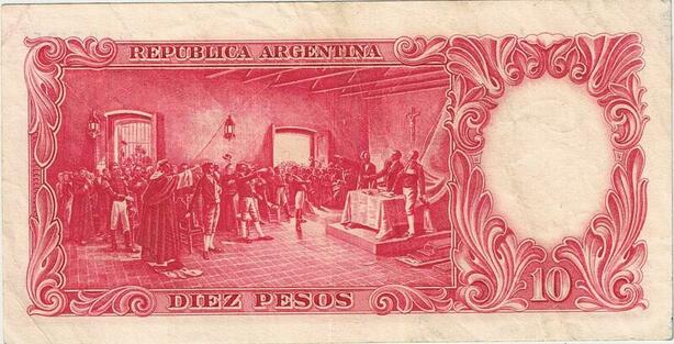 Q5268 Banknote Argentina 10 Pesos Jose De San Martin Meeting scene 1943