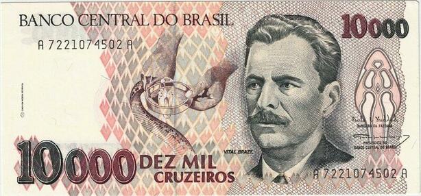 Q5271 Banknote Brazil 10000 cruzeiros Vital Brazil Sepentarium 1991-1993