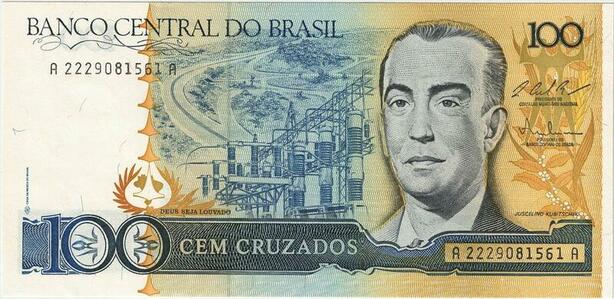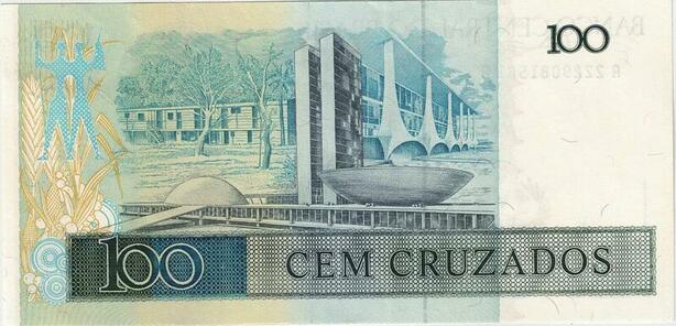 Q5275 Banknote Brazil 100 Cruzados Juscelino Kubitschek Palace 1986-1988