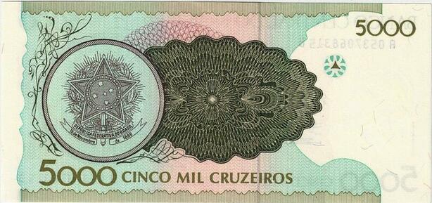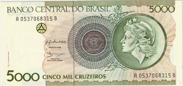 Q5276 Banknote Brazil 5000 Cruzeiros Republic Effigy 1990 - Make Offer