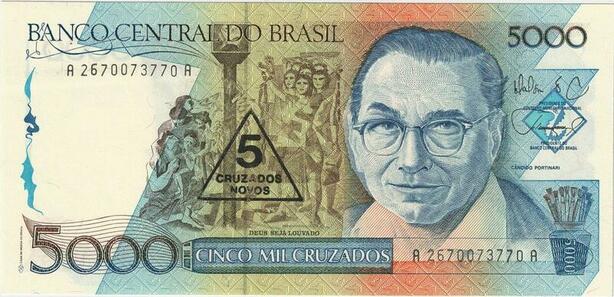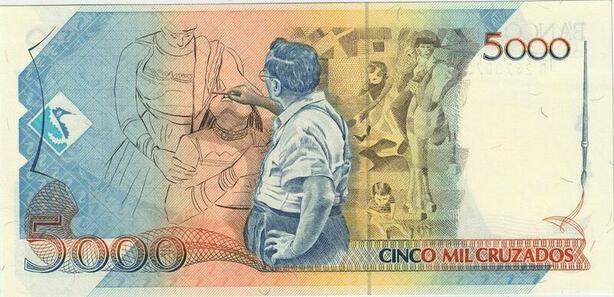 Q5278 Banknote Brazil 5000 Cruzados Candido Portinari Baianas Panel 1988