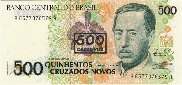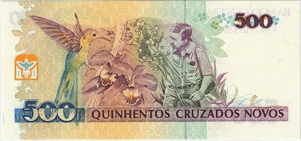 Q5279 Banknote Brazil 500 Cruzados novos Augusto Ruschi Hummingbird 1990