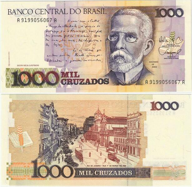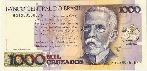 Q5281 Banknote Brazil 1000 Cruzados Machado de Assis Excerpt 1987-1988