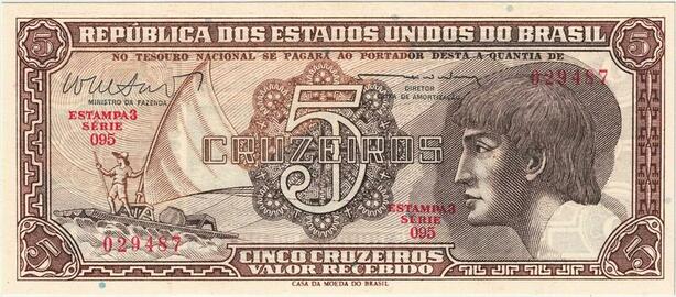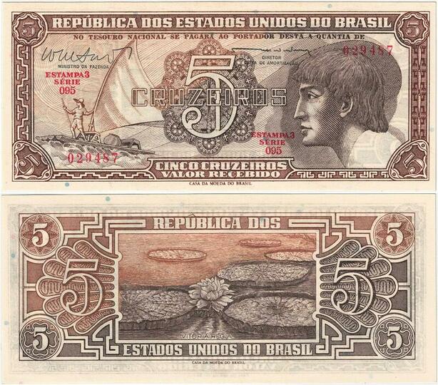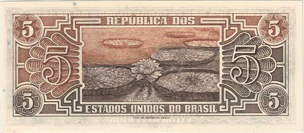 Q5283 Banknote Brazil 5 Cruzeiros Raftman Victoria Amazonica 1961-1962