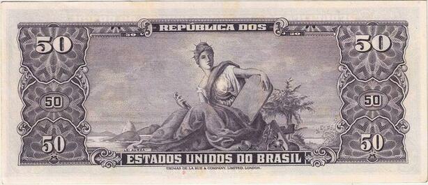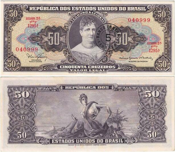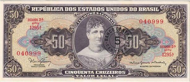 Q5292 Banknote Brazil 50 Cruzeiros Princesa Isabel Aurea Law 1954-1960