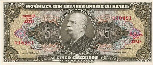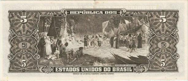 Q5295 Banknote Brazil 5Cruzeiros José Paranhos Conquest of Amazonas 1953-59
