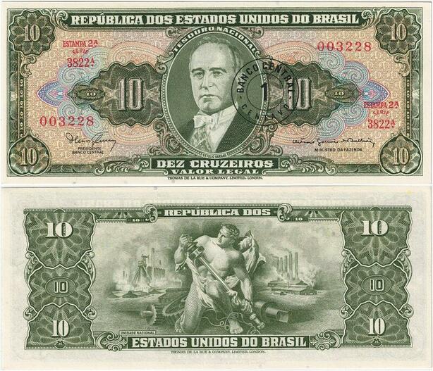 Q5296 Banknote Brazil 10 Cruzeiros Getúlio Vargas Allegory of Unity 1943