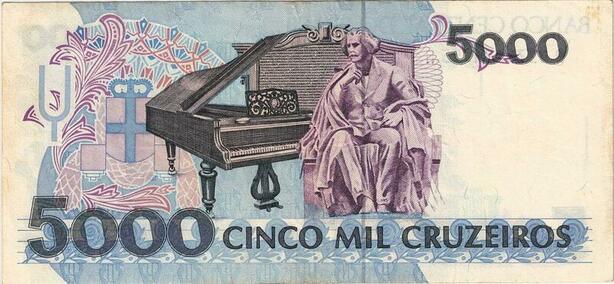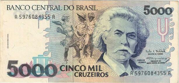 Q5311 Banknote Brazil 5000 Cruzeiros Antônio Carlos Gomes Statue 1990-1993