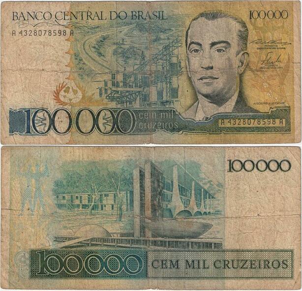 Q5316 Brazil 100 000 Cruzeiros Juscelino Kubitschek Alvorada Palace 1985
