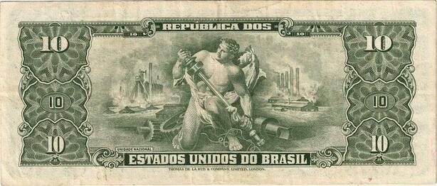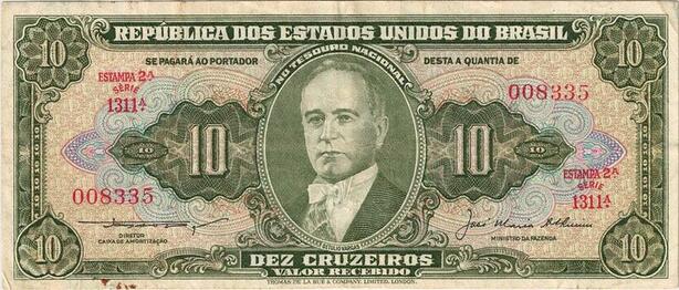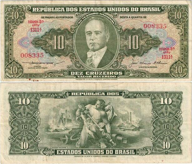 Q5318 Brazil 10 Cruzeiros Getúlio Dornelles Vargas Unity allegory 1953-1960