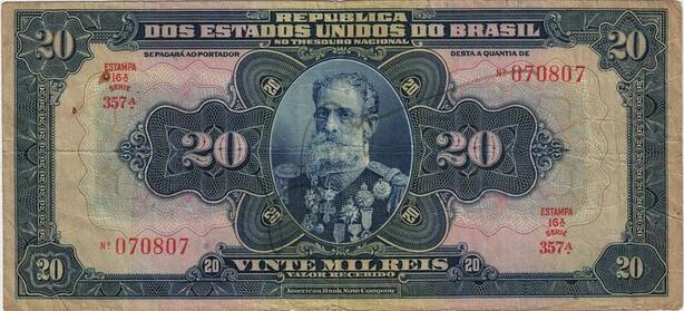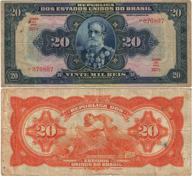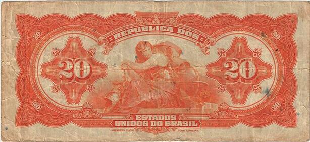 Q5319 Banknote Brazil 20000 Reis Manuel Deodoro da Fonseca Minerva 1919