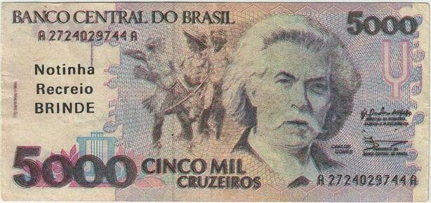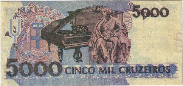 Q5328 Banknote Brazil 5000 Cruzeiros Antônio Carlos Gomes Statue 1990-1993
