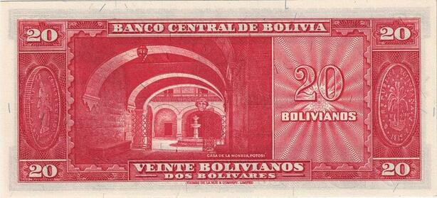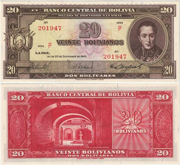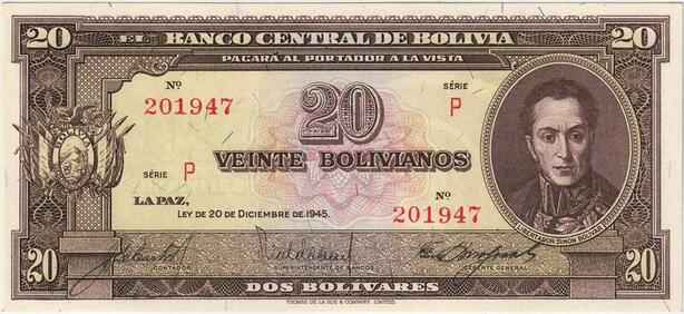 Q5342 Bolivia 20 Bolivares Simon Bolivar Potosi Mont 1945 - Make Offer