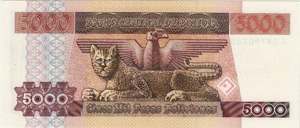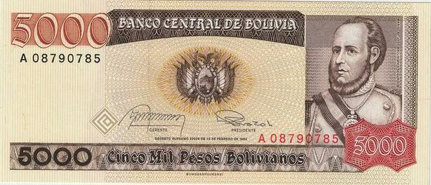Q5344 Banknote Bolivia 5000 Pesos José Ballivian y Segurola Leopard 1984