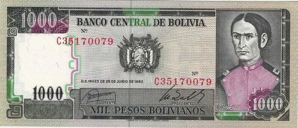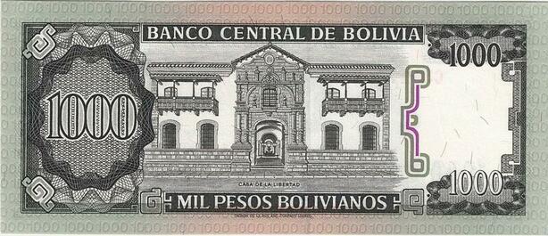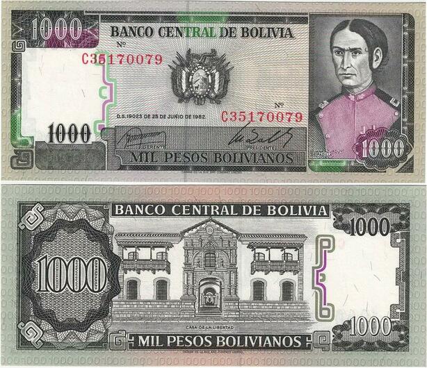 Q5345 Banknote Bolivia1000Pesos Juana Azurday de Padilla Liberty house 1982