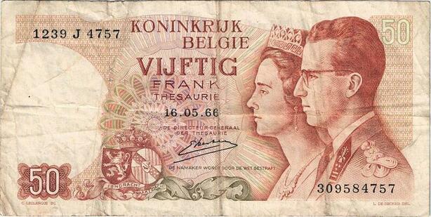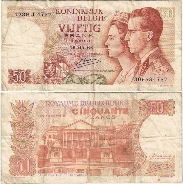 Q5660 Banknote Belgium 50 Francs Baudouin I Queen Fabiola 1966 -> Make offer