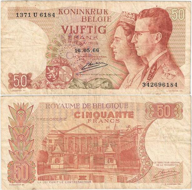 Q5662 Banknote Belgium 50 Francs Baudouin I Queen Fabiola 1966 -> Make offer
