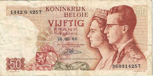 Q5663 Banknote Belgium 50 Francs Baudouin I Queen Fabiola 1966 -> Make offer
