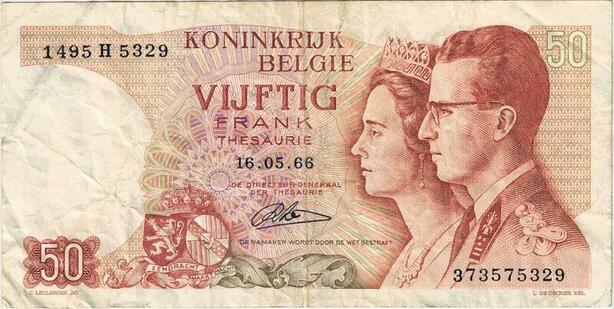 Q5665 Banknote Belgium 50 Francs Baudouin I Queen Fabiola 1966 -> Make offer
