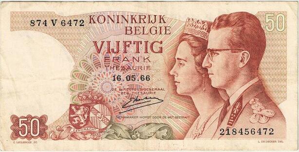 Q5666 Banknote Belgium 50 Francs Baudouin I Queen Fabiola 1966 -> Make offer